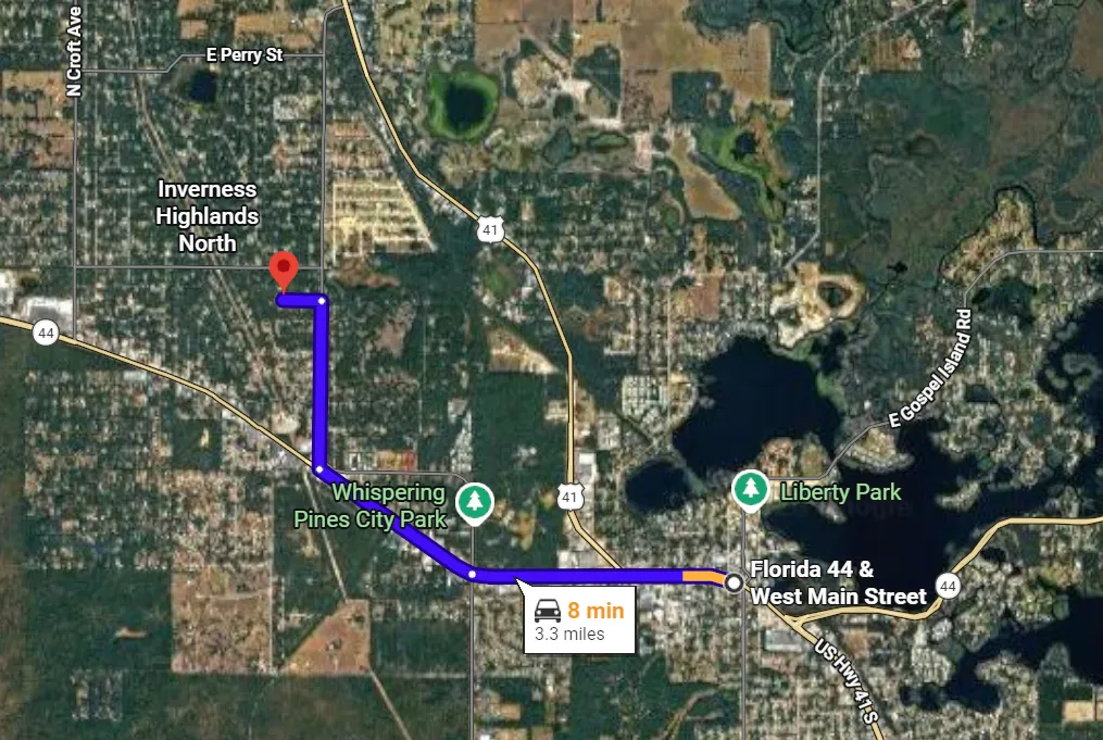 Start near Downtown Inverness, FL (Courthouse Square).