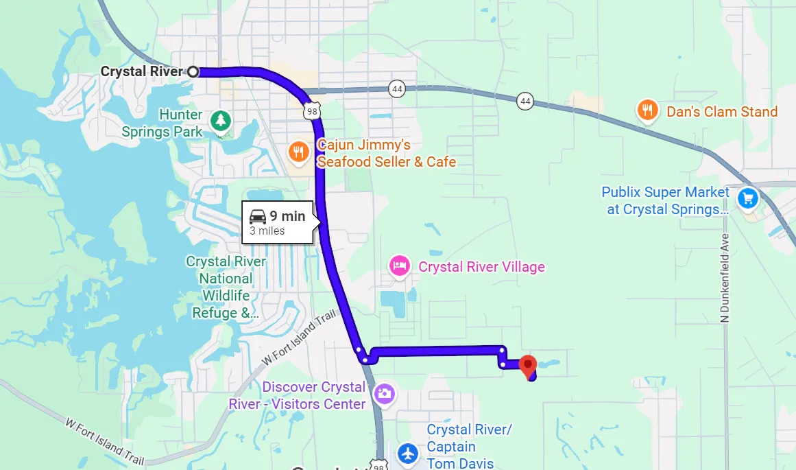 Start near Downtown Crystal River, FL.