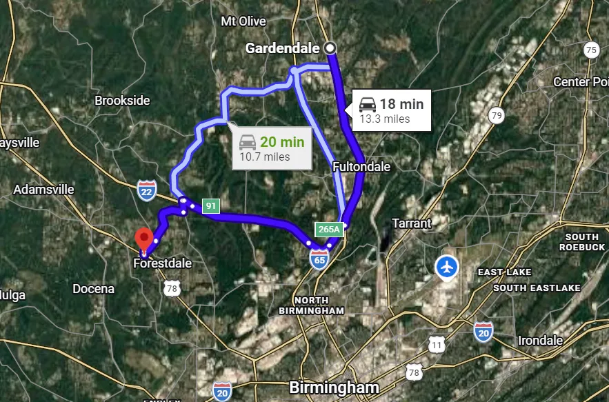 From I-65, take the exit for US-31 / Decatur Highway and head north toward Forestdale.